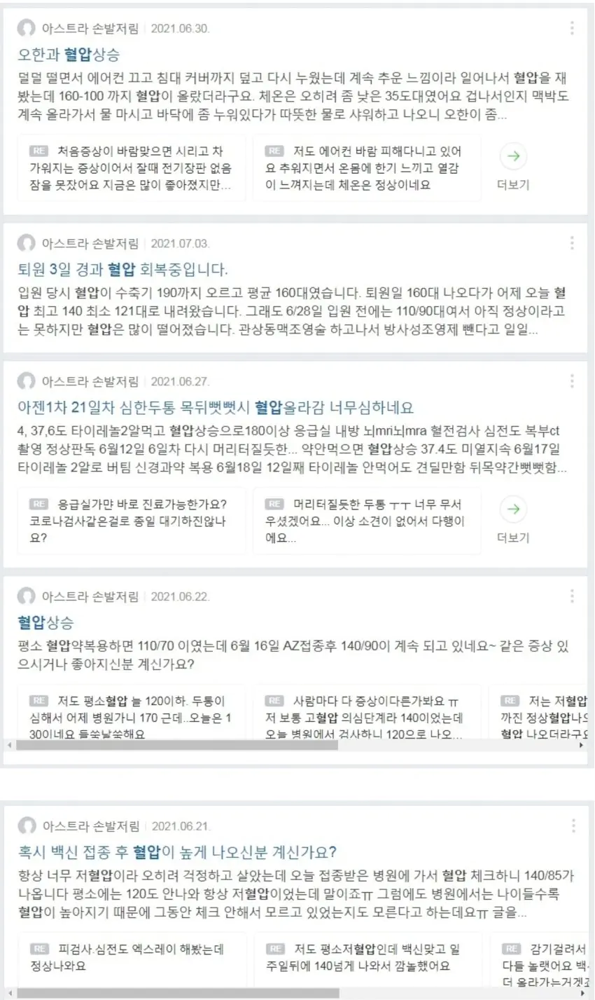 백신 부작용이 혈전생성이니까 혈압상승은 당연한건가