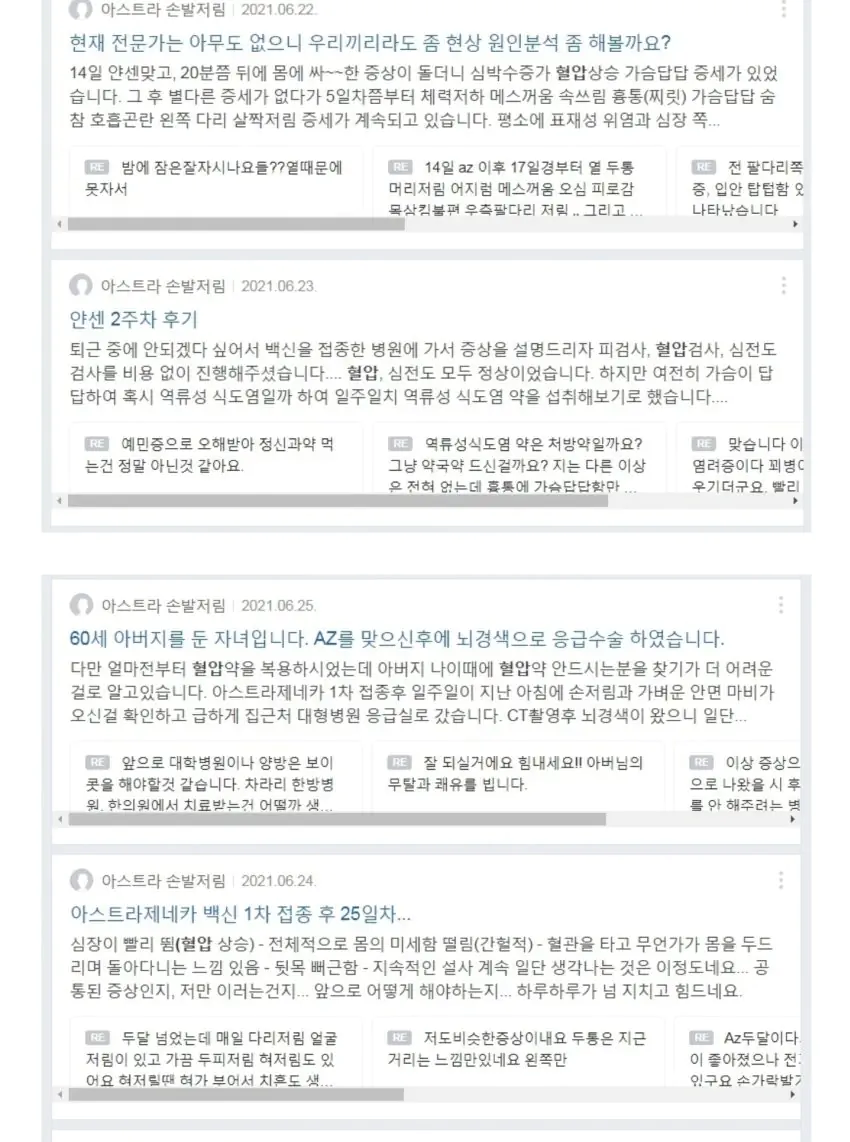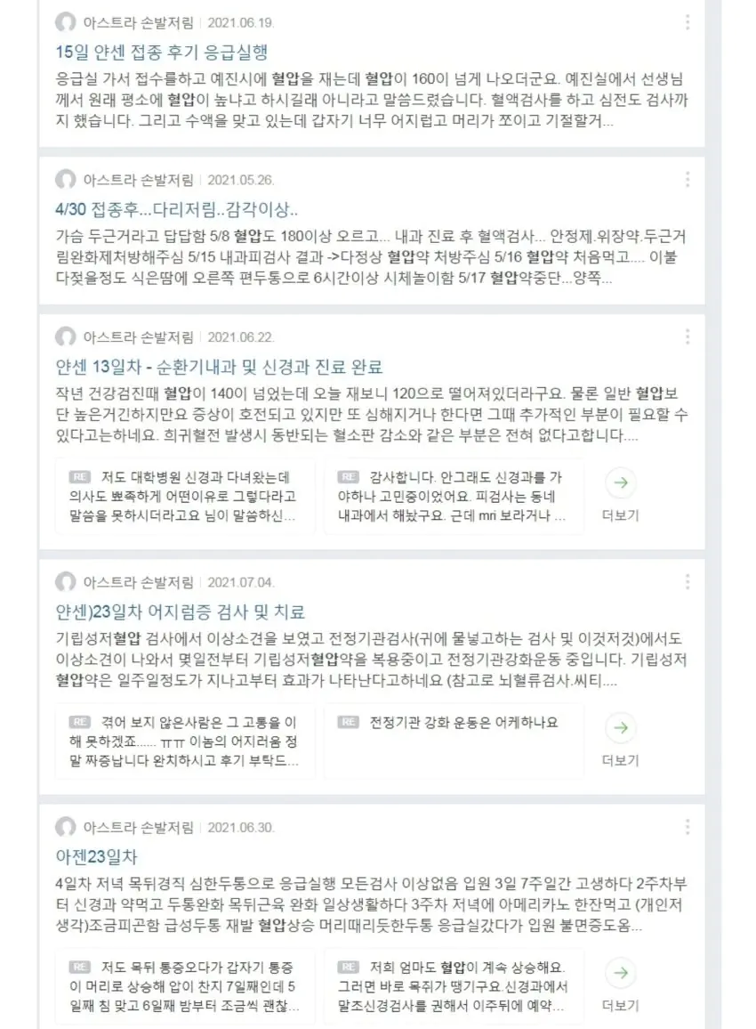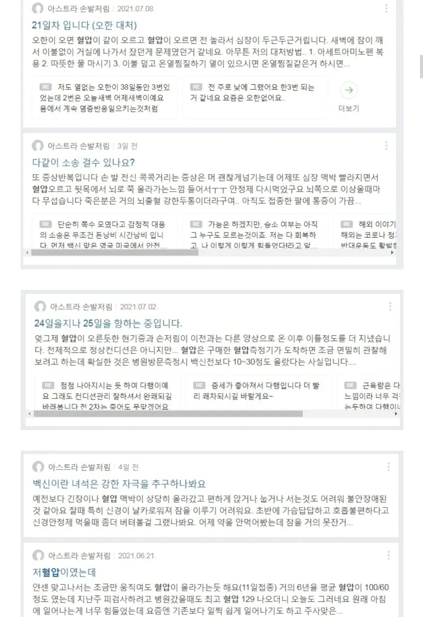 백신 부작용 아스트라 손발저림 네이버 카페