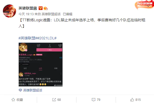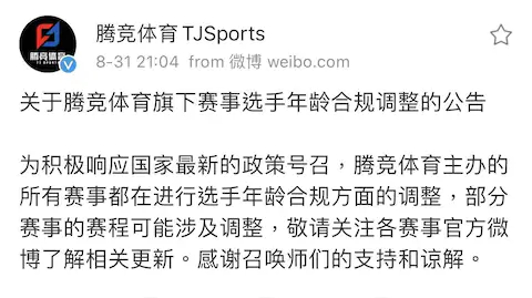 LPL 운영하는 TJ 스포츠가 나이 규정 조정한다고 했음. 중국 법 그대로 18세 미만은 대회 출전 금지일듯