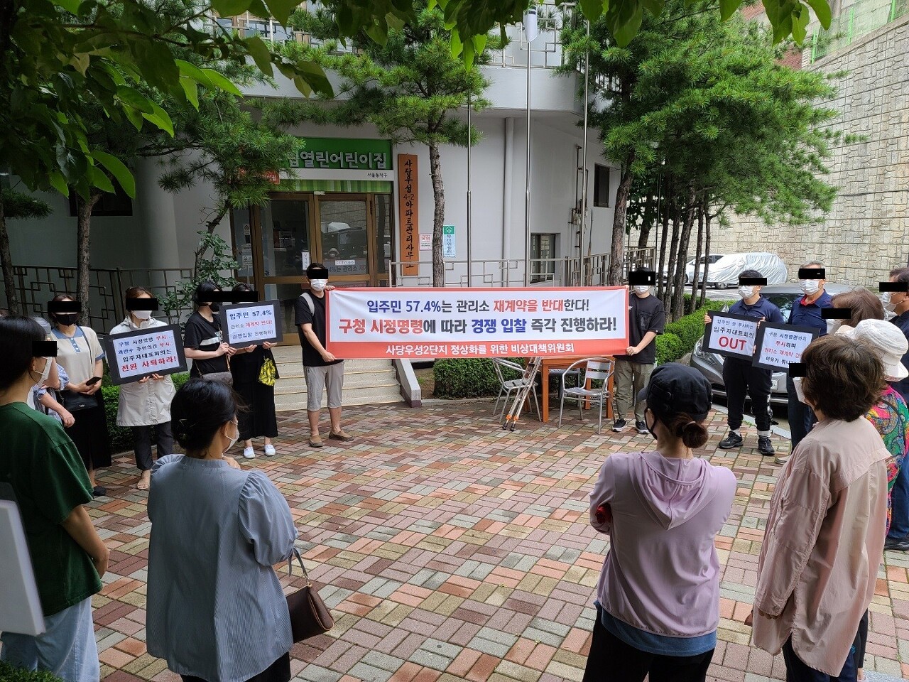 입주민 : 선관위 의견청취 결과는 과정상 적법하지 못한 부분 때문에 동작구청으로부터 재계약 근거로 삼지 말라고 이미 시정명령 받은 바 있다. 전달은 받았나?