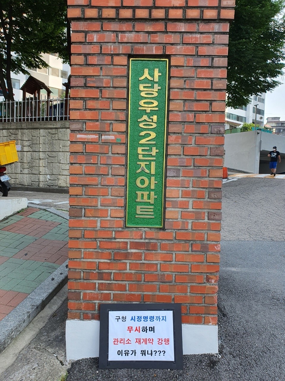 기존 관리소 계약 만료인 6월30일이 지난 상황임에도 불구하고 아직까지도 이게 지금 사당우성2단지의 현실이다.