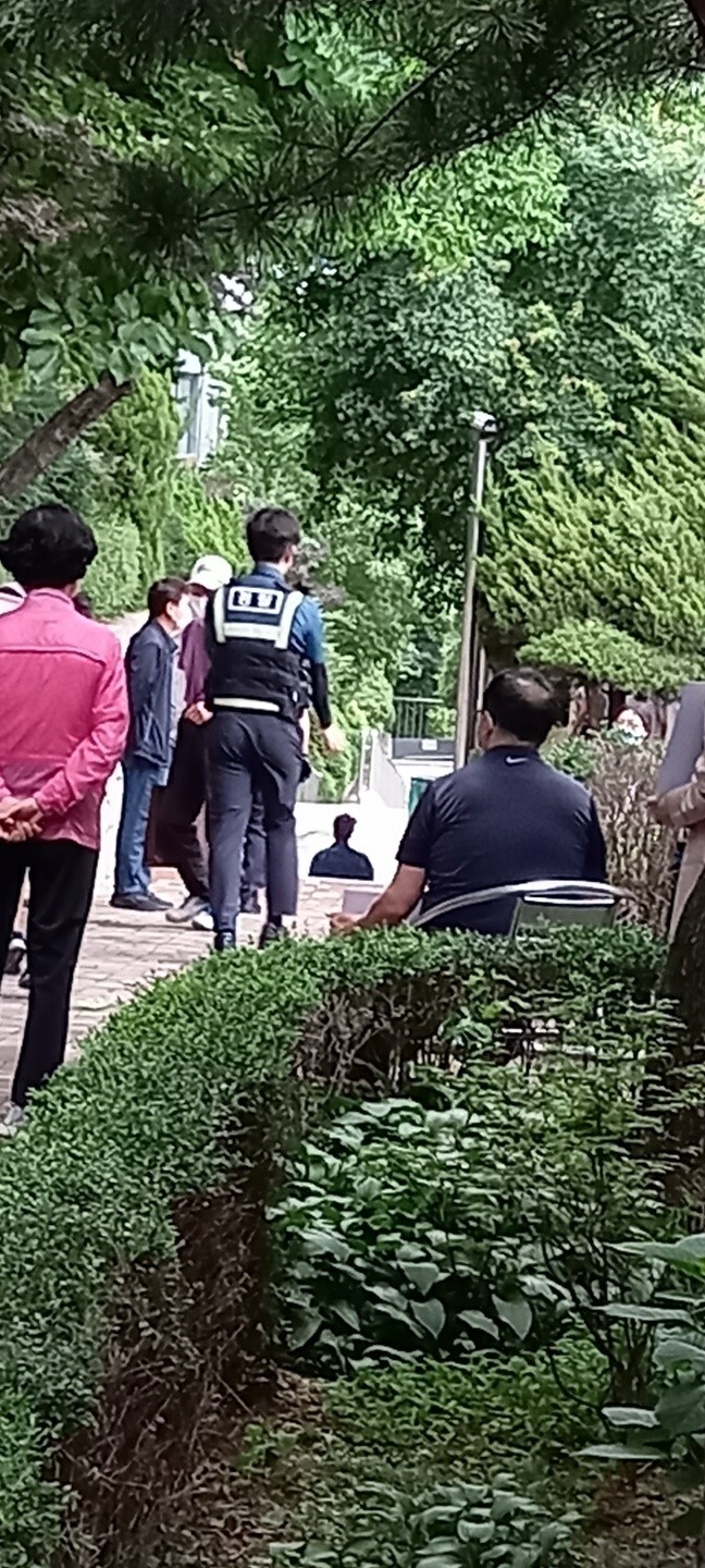 회의가 시작될 6시 무렵 관리소에서 불렀는지 지구대 경찰 두명이 출동했다. 우리들을 슬쩍 보더니 별일이 없는 것을 확인하고 관리소에 들어갔다가 다시 나와서 그냥 유유히 사라져주긴 했지만 입주민들 상대로 경찰신고라니?