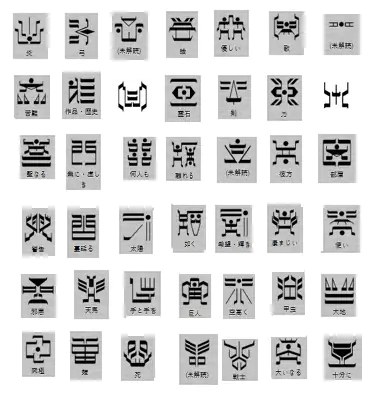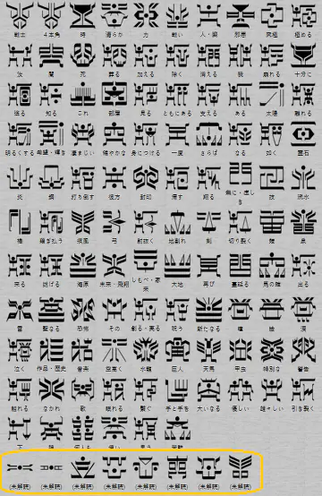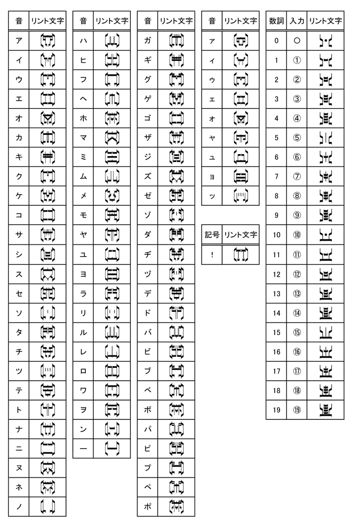게다가 회색 배경의 글자 중 몇개도 대충 검색하면 나오는 고대 가상 문자표 짤에서는 짤려서 잘 안나오는 아랫줄 8개의 추가 문자 중에 갖다 쓴 글자도 있어서 제작진 놈들이 명백히 지들이 갖다 쓴 문자가 가면라이더 쿠우가의 린트 문자이고 의도적으로 해당 자료만 표적으로 끌어 모아서 만든게 확실하다는 증거가 뻔히 나왔는데도 4과문에는 우덜이 암것도 걍 모르고 아무거나 줏어 쓰다 보니 그게 가면라이더 였음 ㅈㅅㅈㅅ 하고 4과문 찍싸고 치운게 다 뽀록남