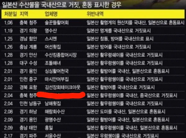 근데 횟집은 어쩔수없는게 일본산이라고 적어놓으면 사람들이 꺼려함 후쿠시마랑 1도 영향없는 지역에서 잡은것도 일본만 적혀있음 불안해하니 국내산으로 적는곳이 많다고함 뭐 그렇다고 잘했다는건 아님 수산물의 특성상 솔직히 한국산이나 일본산이나 도긴개긴이긴해
