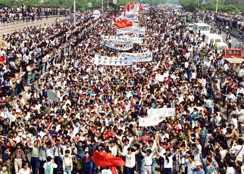 1989년 4월 15일에 시작되어 6월 4일에 중국 공산당에 의해 유혈 진압된 중국 천안문 광장에서 벌어진 대규모 민주화 운동.
