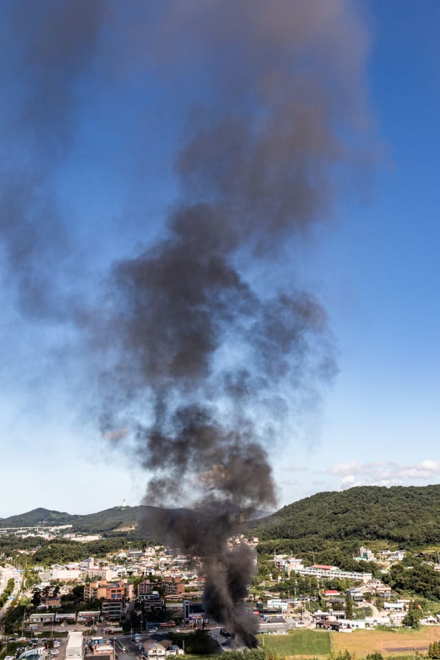 쉬는 날이라 애기 달래며 우쭈쭈 하고 있는데 창문 너머로 검은 연기가 크게 치솟더라구...