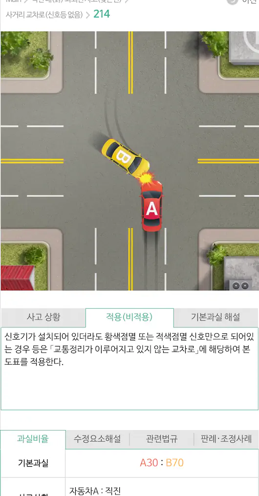 황색 점멸이라 억울해도 어쩔 수 없다 녹색이면 100 대 0이나 이건 7대3에서 8대2까지 본다 교차로면 서행하자 특히 신호 없거나 황색일 땐