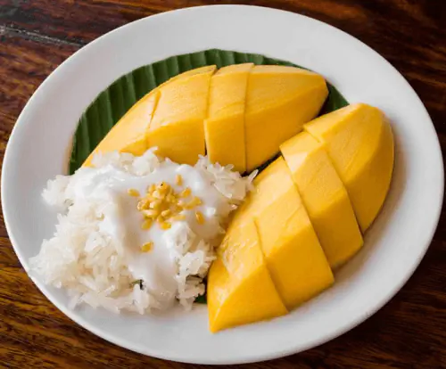 약간 덜 익은 망고랑 찰밥 멱는건대 맛있음 방콕 여행갔을때 먹어봄