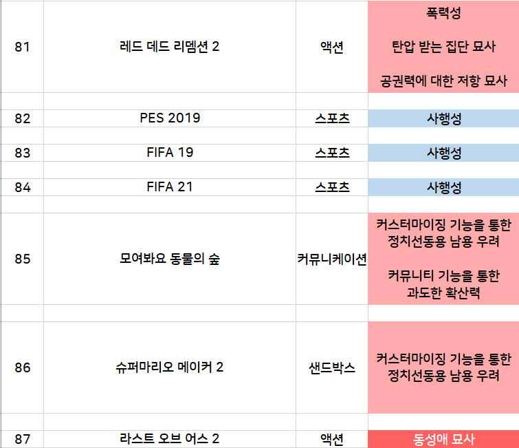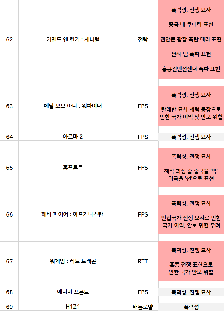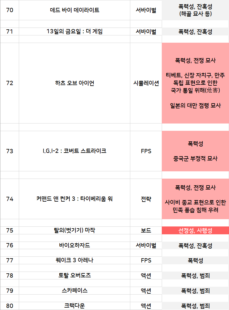 4. 민족 혐오, 차별을 선동하고 민족의 단결을 깨트리거나 민족의 풍습을 침해하는 게임.