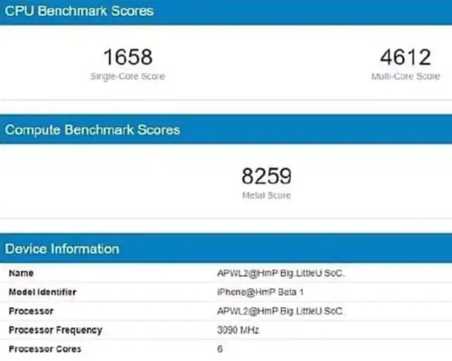 유출된 벤치마크 점수에 따르면
