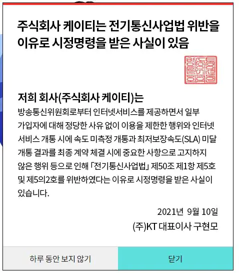 속도 구라 맞고 요금단합 맞고 허위광고도 맞음