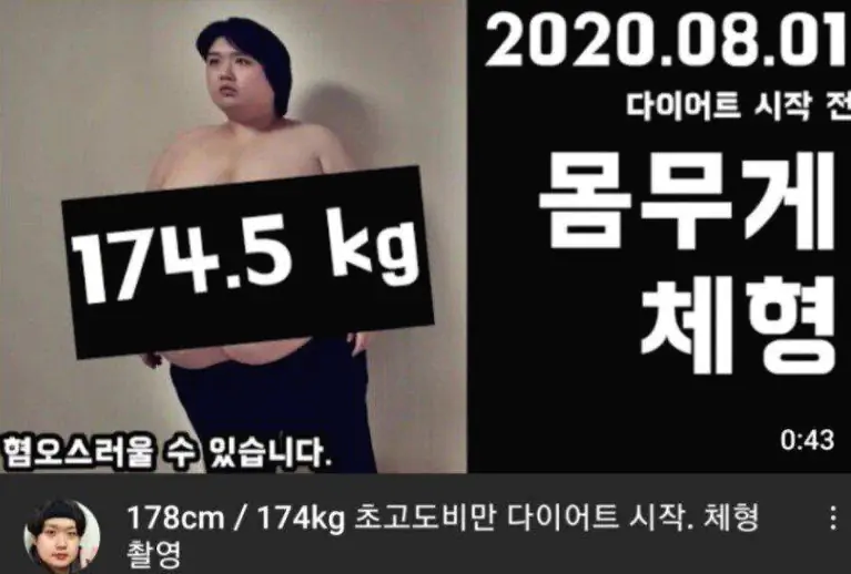 170kg치고 얼굴에는 살이 별로 없네 한 1년은 죽었다 생각하고 운동하고 식단관리하면 100kg까진 뺄 수 있음 의지가 중요하지