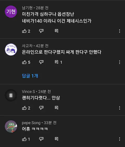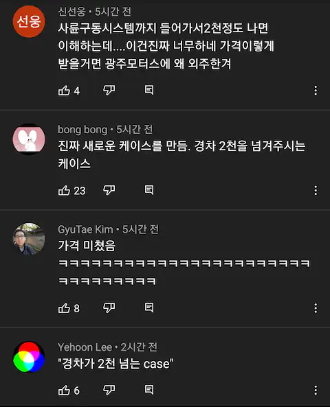 내가 기본형 1300에 풀옵 2000이라고 예상 할 땐 비웃던 새끼들이 진짜로 그러니까 지랄발광하는 거 봐 ㅋㅋ 응 이게 내수 흉기차야 병신들아 ㅋㅋ 그렇게 당하고 또 속냐? ㅋㅋ