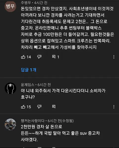 2천 오버면 중고 스포티지도 노릴수 있지 않냐? 어느 대가리에 빵꾸난 새끼가 저걸 사냐