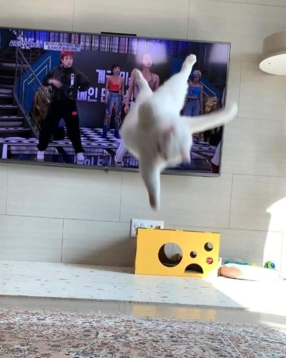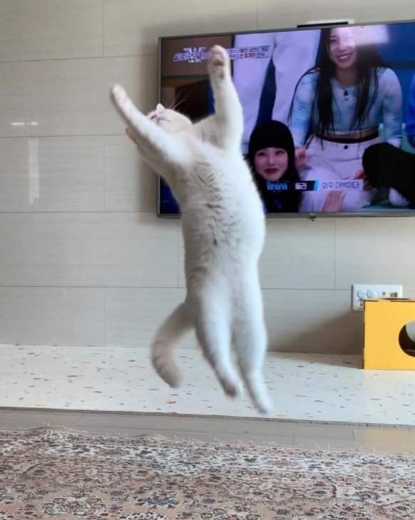 원 댓글이가 말하는 사진은 점프하는 고양이 사진이다 마지막 짤과 유사한 자세로 찍힌 유명한 사진이 있다