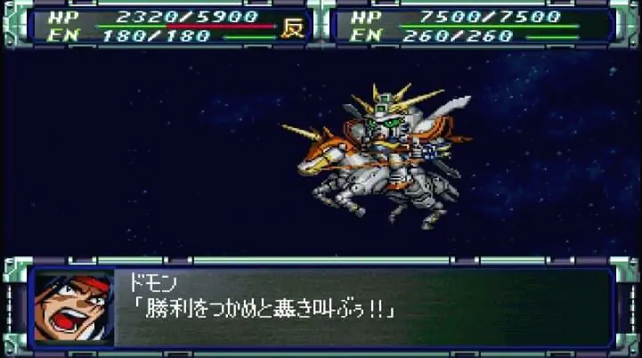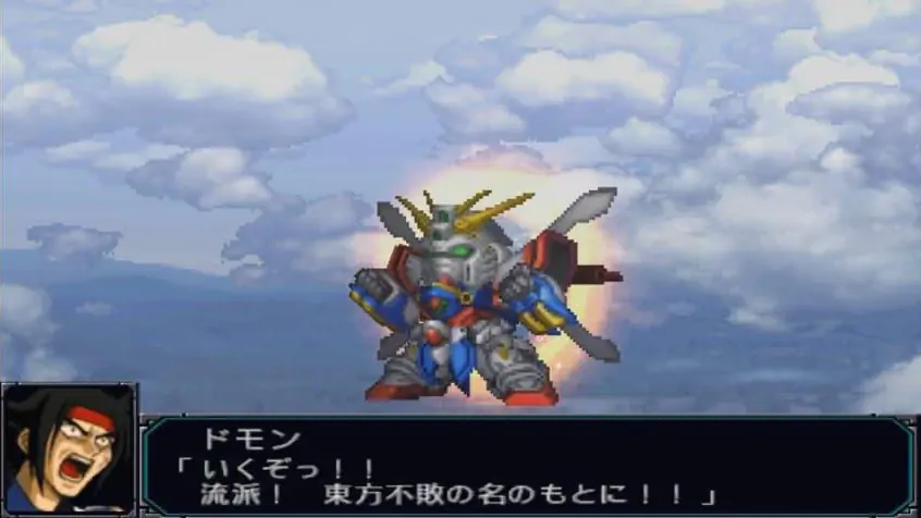 2회이동도 다른 답없는 슈퍼로봇들에 비하면 꽤나 빠르고 명경지수 보정과 초급패왕잔영탄 맵병기도 있어서 생각보다 쓸만하다고 느낄 수 있지만 문제는 그놈의 레벨제 무기 공격력 상승 때문에 갓 건담 주제에 화력이 개병신이라 얘 키울바엔 다른 애들 키우는게 훨씬 낫다.