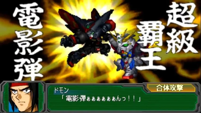 G건담 첫 참전인데 셔플동맹은 하나도 안 나오고 딸랑 샤이닝 건담, 갓 건담 두개만 나온다. 뭐 윙키새끼들 원작고증이나 재현도는 n차 시절부터 마지막 작품인 F 완결편까지 개씨발 수준이니 그러려니 하자
