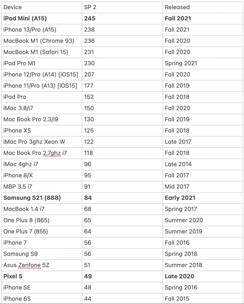 5개의 GPU 코어가 있는 모든 A15 칩셋이 아이폰 프로 재료에 미치지 못하는 것 같다. 3.23GHz를 넘지 못하고, 2.93GHz의 클럭을 가지며 우리는 새로운 아이패드 미니를 준비하게 됩니다.