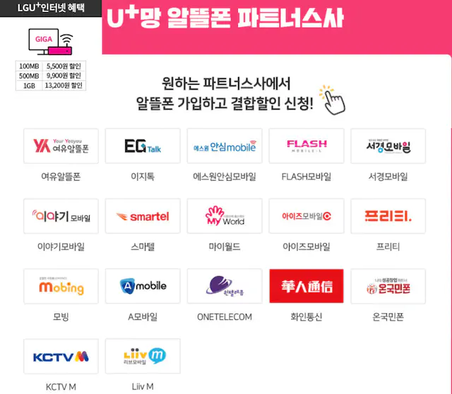 오직 LG U+ 인터넷만 U+망 알뜰과 결합이 가능하다.