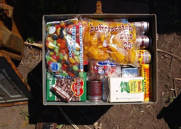 한 가족이 2주 정도를 생존할 걸 가정하고 넣어둔 비상식량, 사탕, 전투식량, 허쉬 시럽 등이 들어있었음