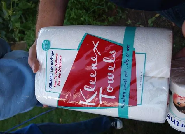 양초와 물호스 및 깔때기 등이 들어있는 물자 박스