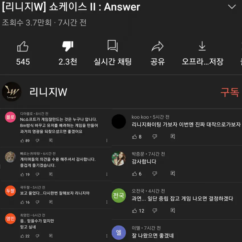 댓글은 NC직원들이 쓴거같고 악플은 전부 삭제당했네