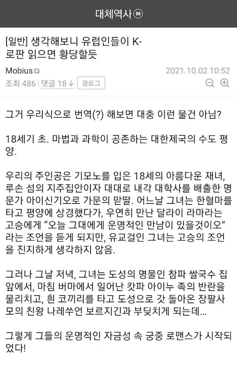 생각해보니 유럽인들이 K-로판 읽으면 황당할듯