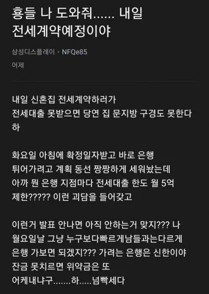 삼성디스플레이 다니는놈이 전세대출 걱정하면 좆소다니는 나는 어케살라는거냐
