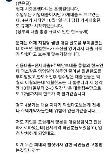 Imf에서 경고 ㅈㄴ 하는 타이밍 비슷하게 대출 막히네