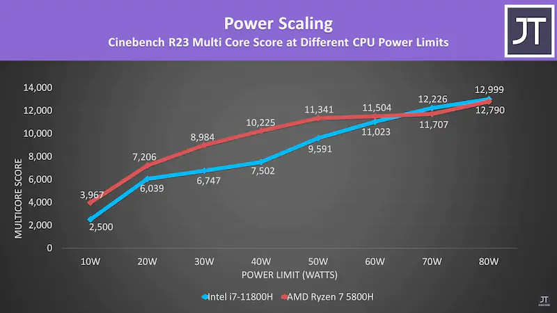 5800H에서 50W 정도에 나오는 성능을 11800H에서는 70W 정도에서 내네요.
