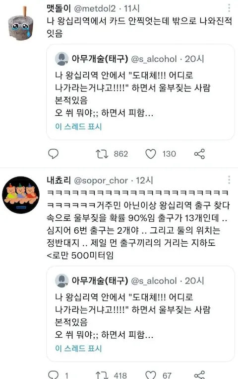 서울충인데 왕십리역에서 길잃어본적 있다..