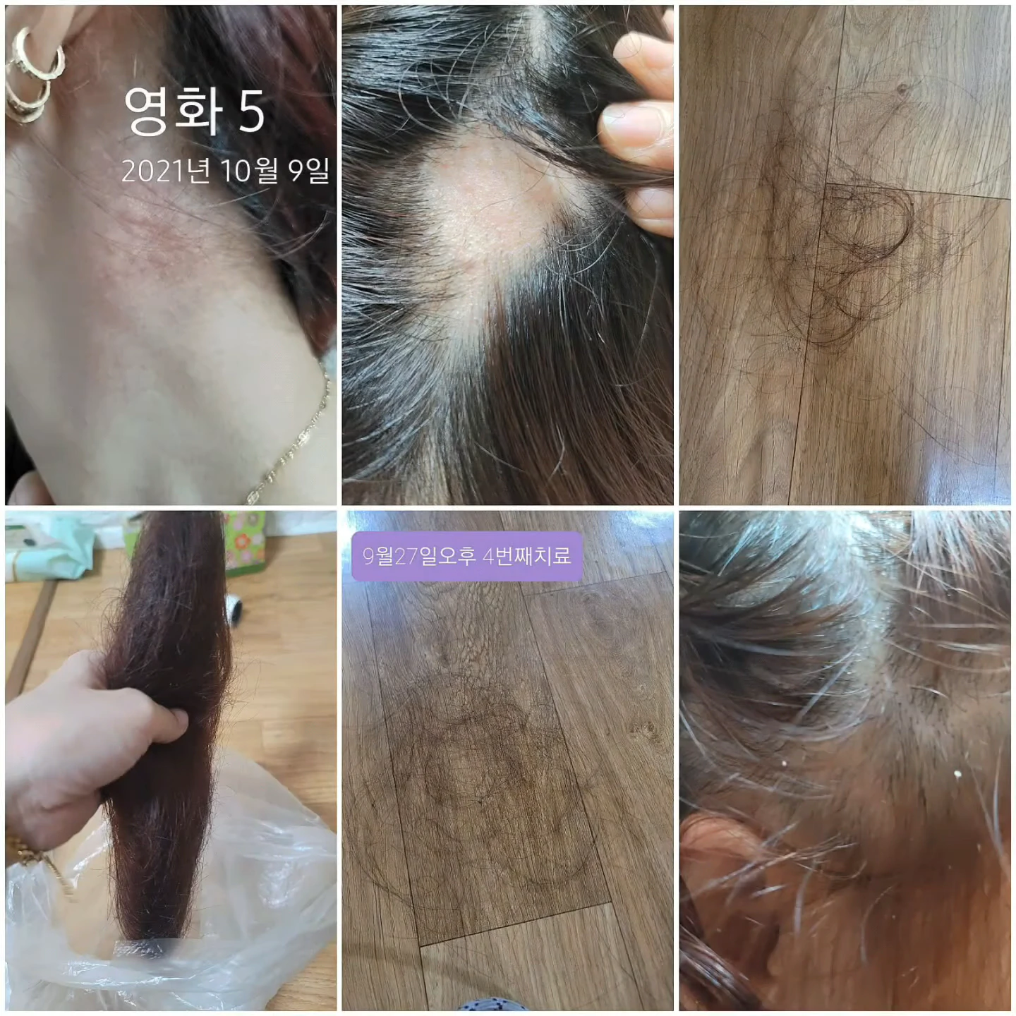 화이자 맞고 원형탈모 진행중 첫번째 사진 : 1차맞고 2주 뒤 발견(미용실가서 이발하다 발견) 2,3,4번째 사진 : 오늘 아침에 찍고 현재도 계속 진행중 1. 처음발견하고 집근처 피부과가서 희석 스테