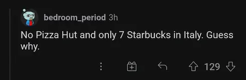 " 이거 맞다. 이태리엔 피자헛 없다. 스타벅스도 7개뿐이다. "