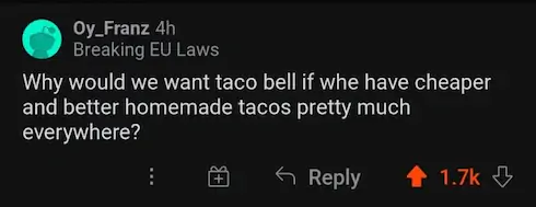"아니 그냥 아무데서나 홈메이드 타코를 더 싸게 해먹을수 있는걸 구지 타코벨이 필요한가?"