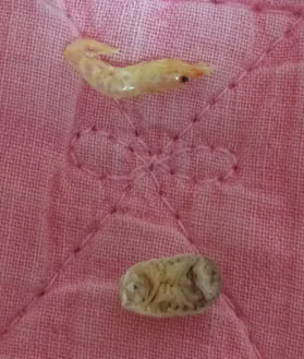 새우젓에는 대체로 바닷가에 그 지네처럼 생긴 갯지네 조그만 게 같이 절여져 들어있는 경우도 있고... 아마 조그만 갯강구 새끼 그런것들도 가끔 있지 않을까 싶음