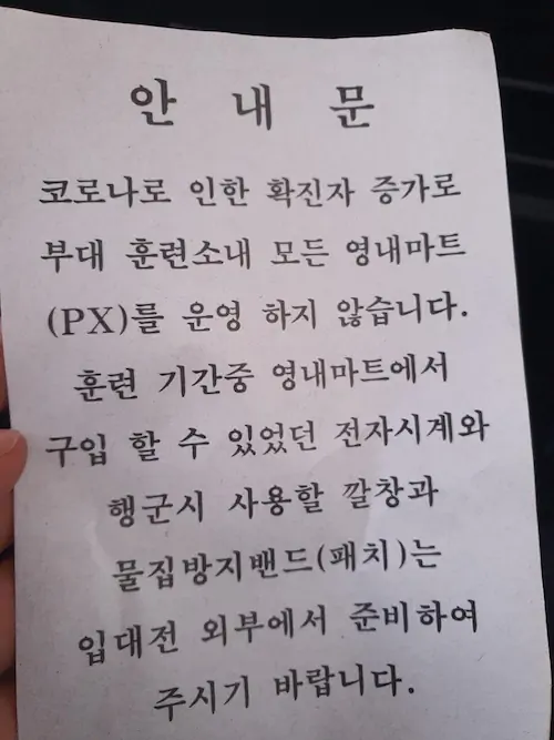 요즘 px 입소 첫 주부터 바로 px 보내주는데 ㅅㅂㅋㅋ