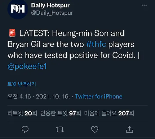 손흥민 백신 접종했는데 돌파감염이네