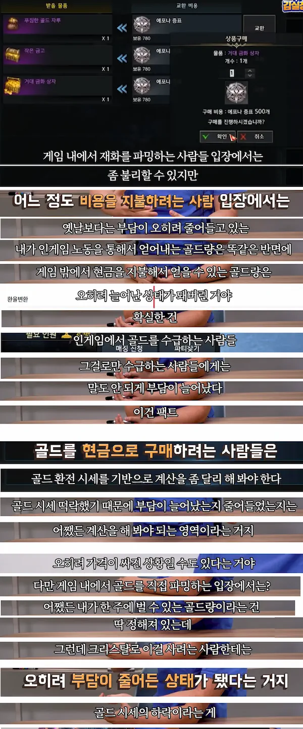 1. 인게임에서만 골드를 수급하는 사람들에겐 말도 안 되게 부담이 늘어났다 (김실장이 인정한 팩트)