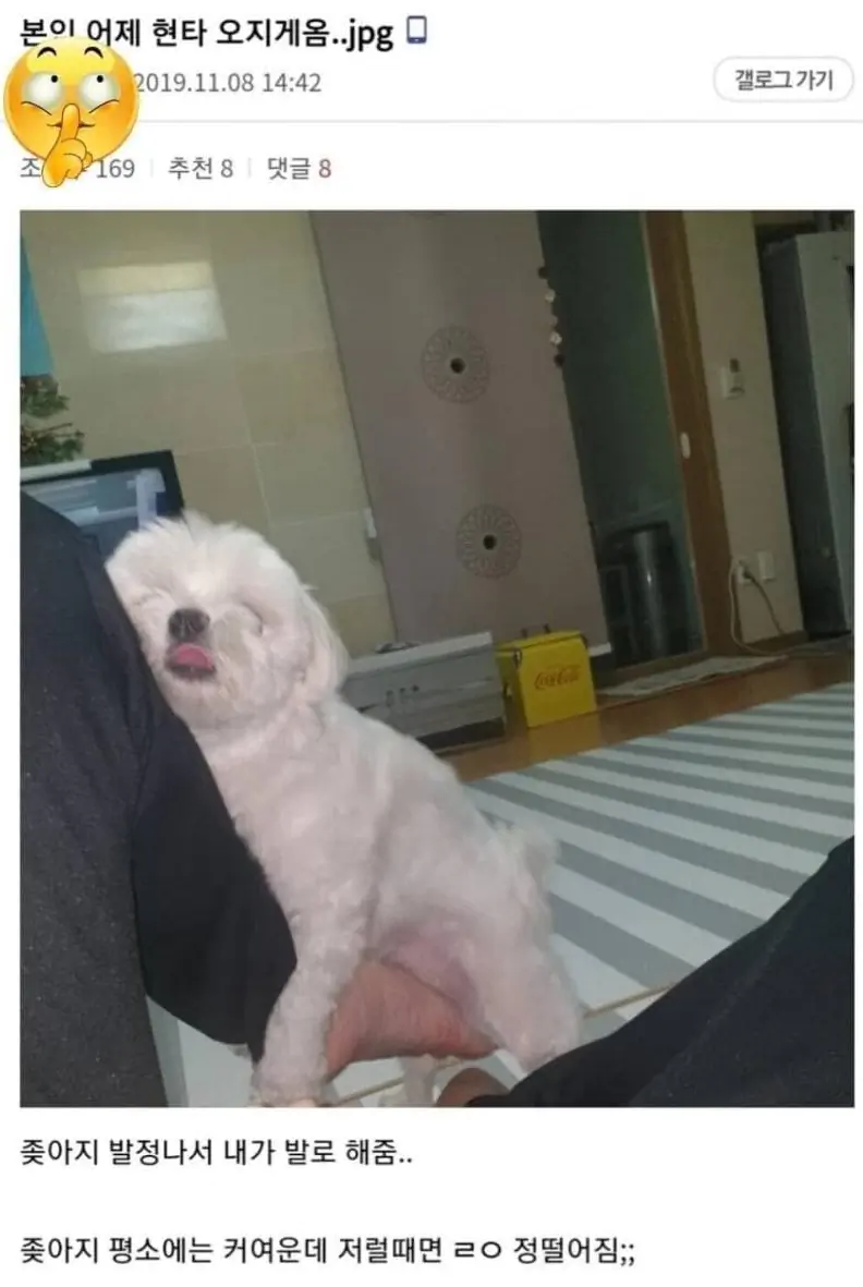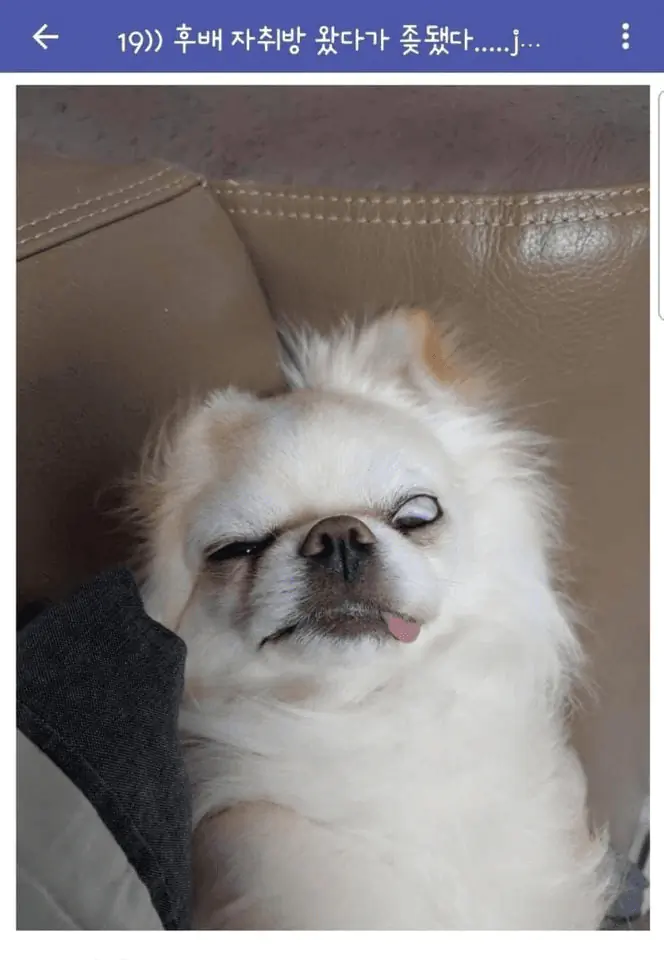 걍 자는거 사진찍은거아님? 개들원래가끔 눈 까뒤집고 자