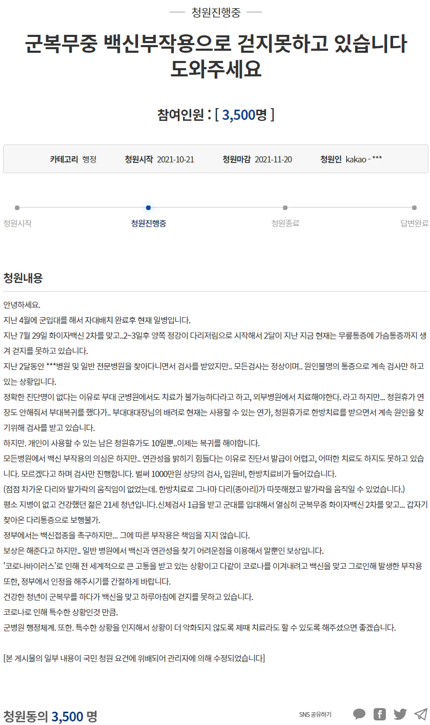 "화이자 맞고 걷지 못해…발가락만 움직여" 21세 현역 군인의 호소