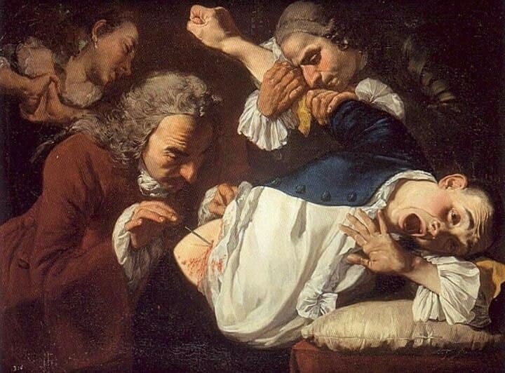 마취, 수혈, 소독 이 세 가지 개념 생기기 전에 수술은 어짜피 병이나 외상으로 뒤질거 마지막 영끌 가챠 한 번 돌려보는거나 마찬가지였음