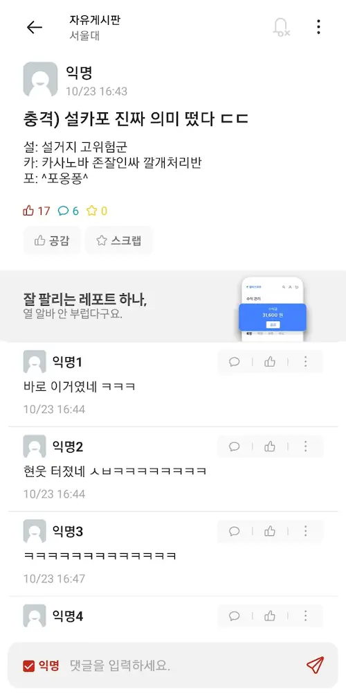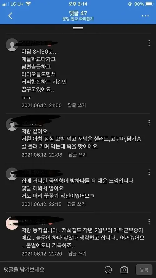 다들 지쳤는지 퐁퐁글에 좋아요만 ㅋㅋ