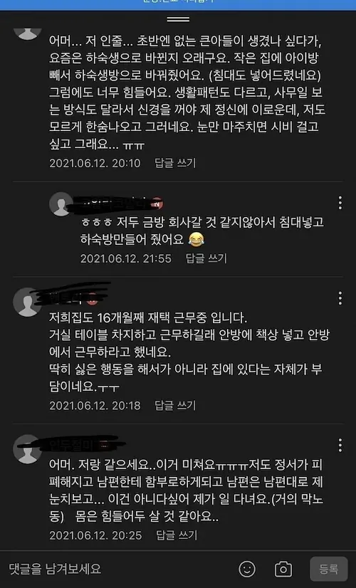 작년 11월쯤 완전재택 돌입할때 부터 느낌이 이상하더라 얼마안됐어