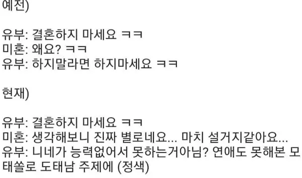 미혼 기혼 갑자기 벽이 생김