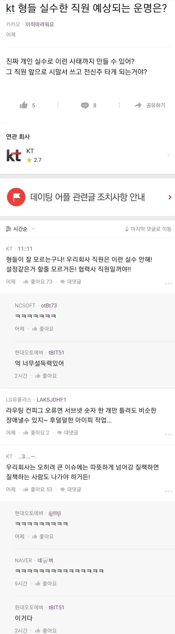 Kt는 임원들부터가 개막장임 ㅋㅋ