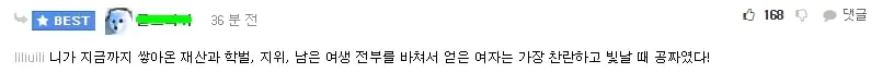 맘카페에서도 남편 사랑한다는 얘기가 죽어도 안나오는게 이래서였네 ㅋㅋㅋ 얘기 나오는순간 바로 급떨어지는 시녀 확정일테니 ㅋㅋㅋㅋ