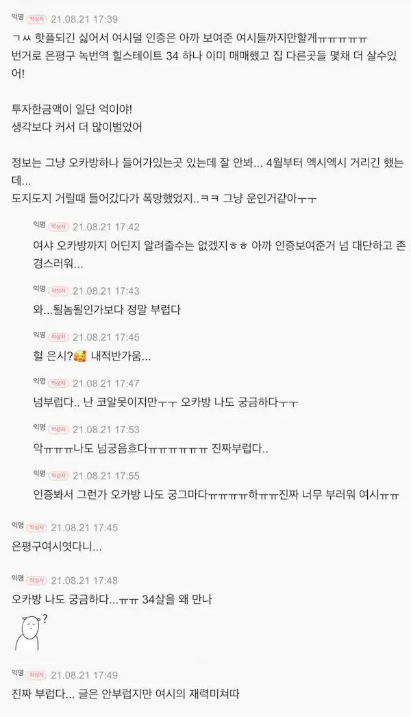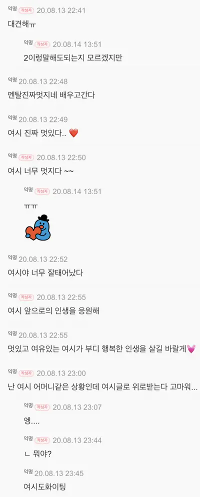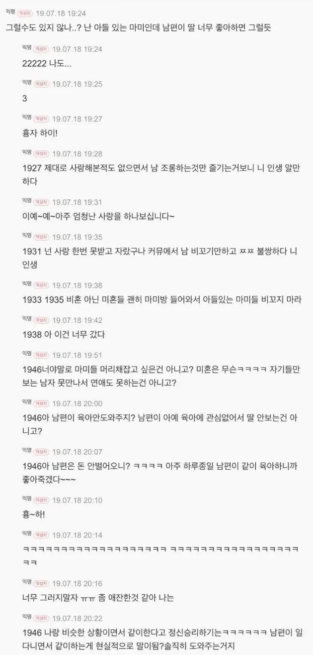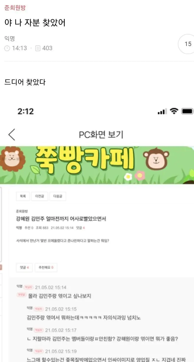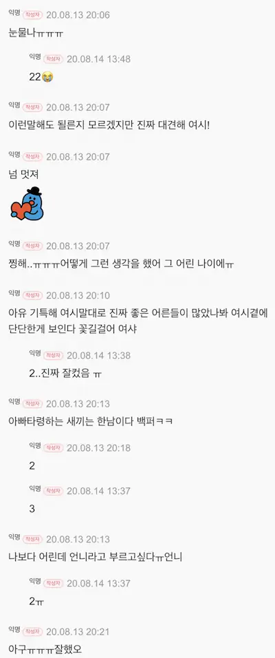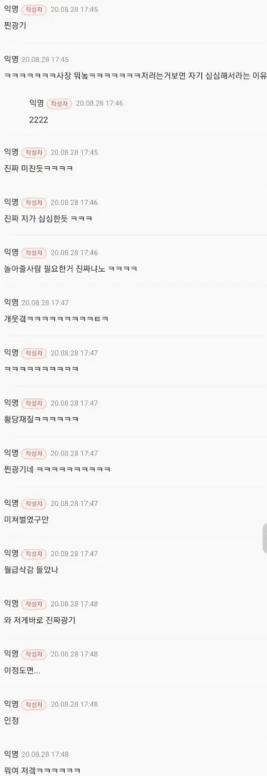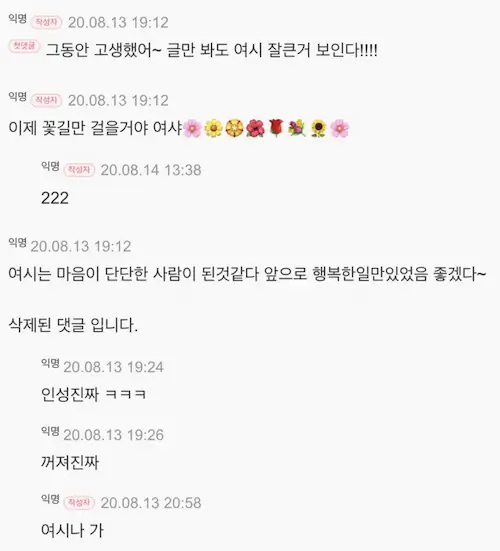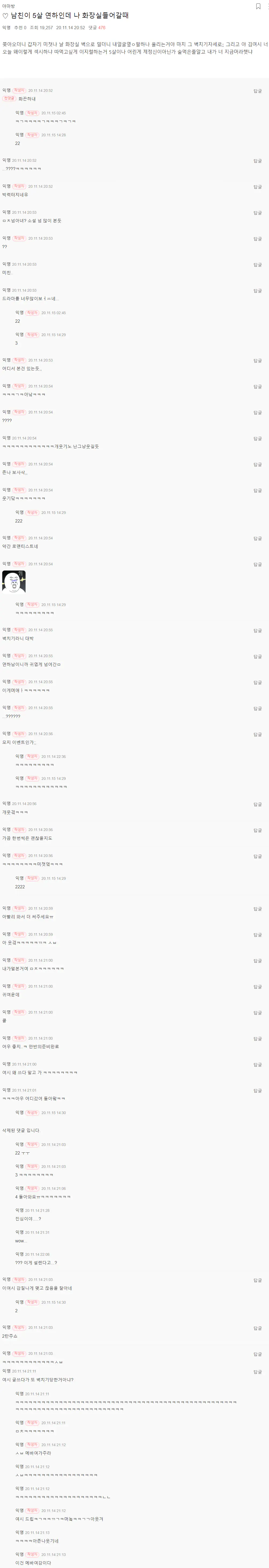 글쓴이 표시 뿐만 아니라 댓글창에서도 동일 인물 표시됐으면ㅋㅋㅋ진짜 재밌었을텐디