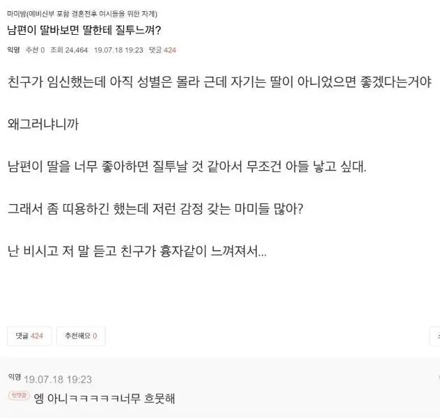 남편이 딸바보면 딸한테 질투느껴?