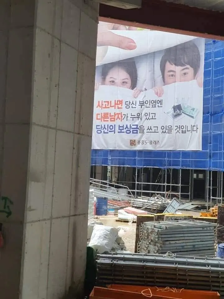 저거 만든새끼 상줘야함 어떤 훈계나 권고보다도 효과적으로 안전수칙 지키게 하네... 나도 저거 보면 이악물고 안전하게 일할 듯