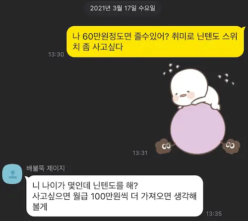 대체 취미생활을 왜 접게 하는거냐? 돈만 벌어오라는거임? 노동기계임?